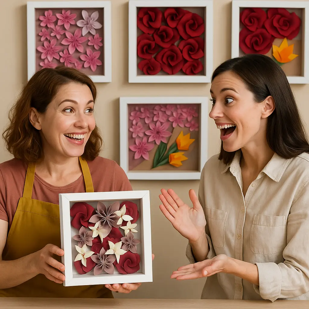 Eu trabalho com crochê há anos, mas sentia que minhas peças já não surpreendiam mais. Quando comecei a criar quadros de origami, foi diferente: minhas clientes ficaram encantadas e começaram a me elogiar pela originalidade. Hoje sinto orgulho de oferecer algo único, que realmente chama atenção.