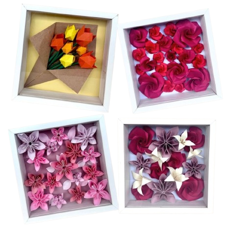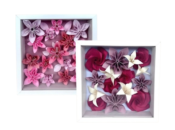 Com papel, tesoura e cola, você pode montar quadros artesanais incríveis, com flores de origami que encantam os olhos e o coração.